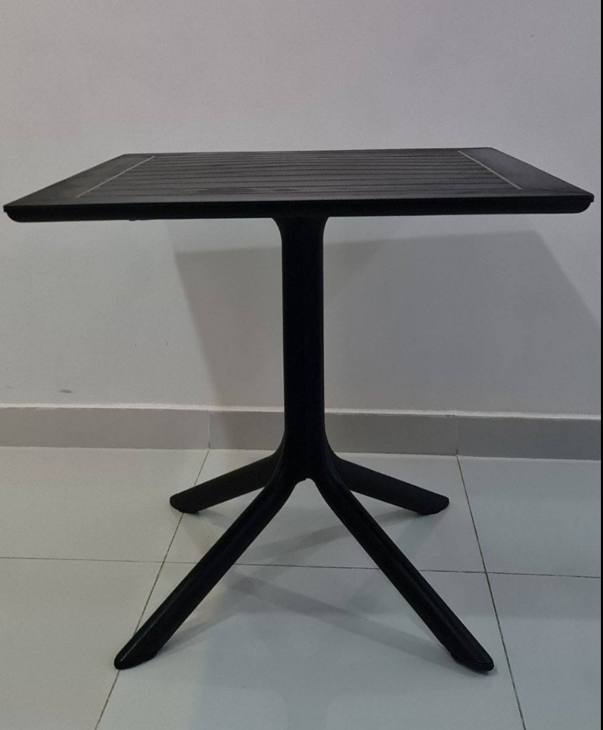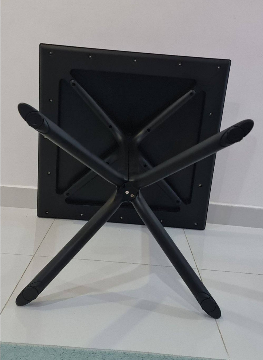 طاولة بوجه بلاستيك و قوائم ثابتة مع إمكانية التحكم بالإرتفاع كما هو موضح بالصور. لا خدوش و لا حتى غبار. جديد طالع من الكرتون. يصلح للمطاعم و الكافيهات.