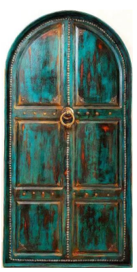 باب ديكور خشبي معتّق باب تراثي تركوازي معتّق بتفاصيل ذهبية يمنح فخامة .وأصالة 62×120